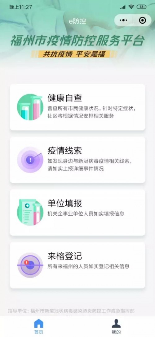 2月5日,福州"e防控"小程序正式上線,與廣州的"穗康"小程序很相似,支持健康自查、疫情線索和單位填報等。